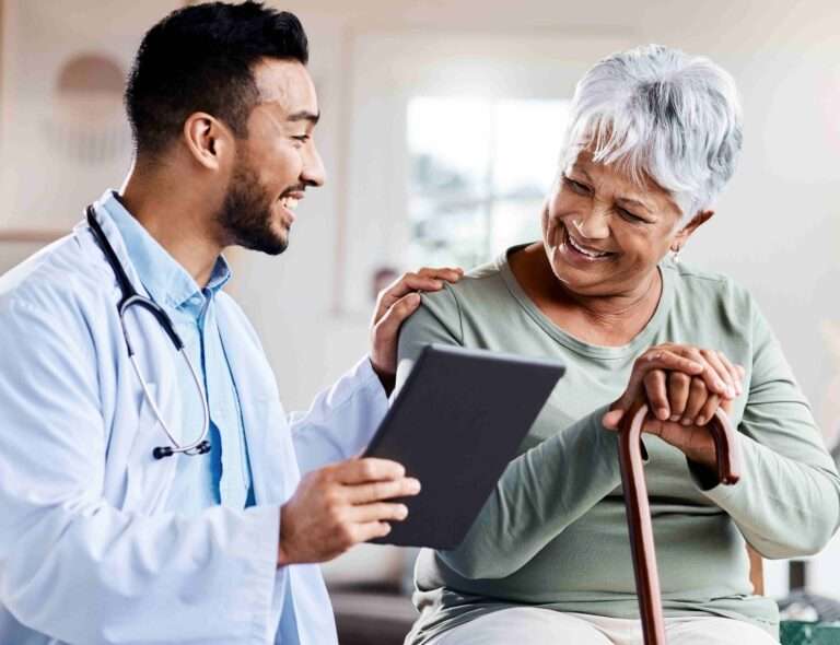 An Elderly patient consulting with a healthcare professional in Athens, Georgia.