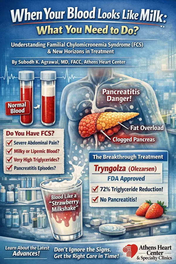 At its core, FCS is a rare, inherited disorder marked by extremely elevated triglyceride levels, often above 880 mg/dL and frequently exceeding 1,000 mg/dL. But the number alone does not capture the seriousness of the condition. What concerns me most is what those numbers represent: a bloodstream overwhelmed by fat particles and a pancreas under threat.
